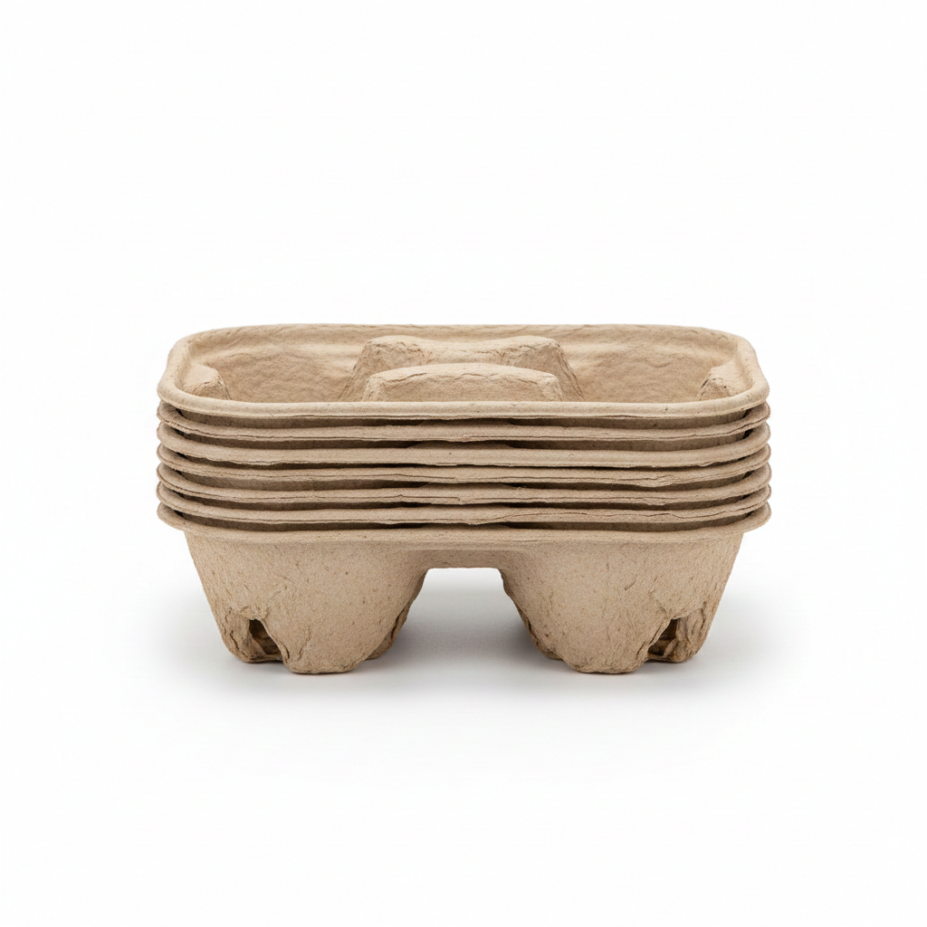 Durable and eco-friendly cup carriers made from biodegradable paper pulp, designed for safe multi-cup handling. Ideal for cafés, hotels, and takeaway services seeking sustainable packaging solutions.